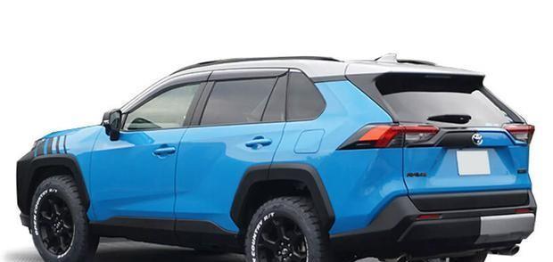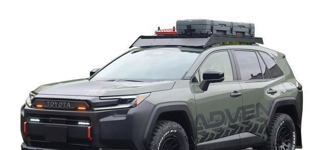 其中一款RAV4 Adventure版主打越野风格,采用绿色车身与黑色拉花设计,并配备无漆材质保险杠、橙色拖车钩、黄色前格栅光源、越野轮胎及车顶行李架等。另一款新车则偏向运动化设计,外观与GR Sport版本风格接近。旧款RAV4改装车采用蓝黑双色涂装,搭载越野轮胎与侧窗雨挡,并可选装车顶滑雪板架。